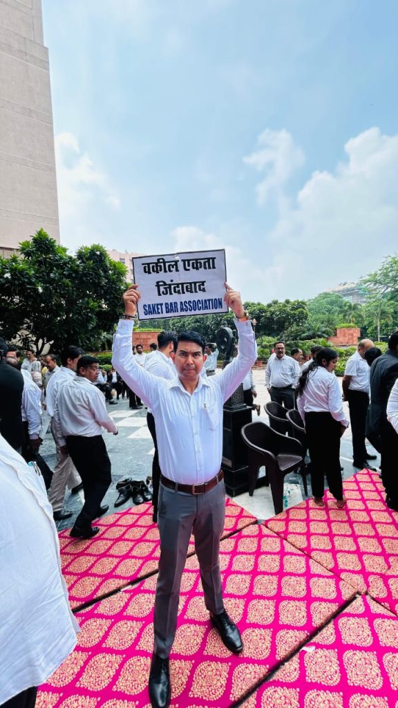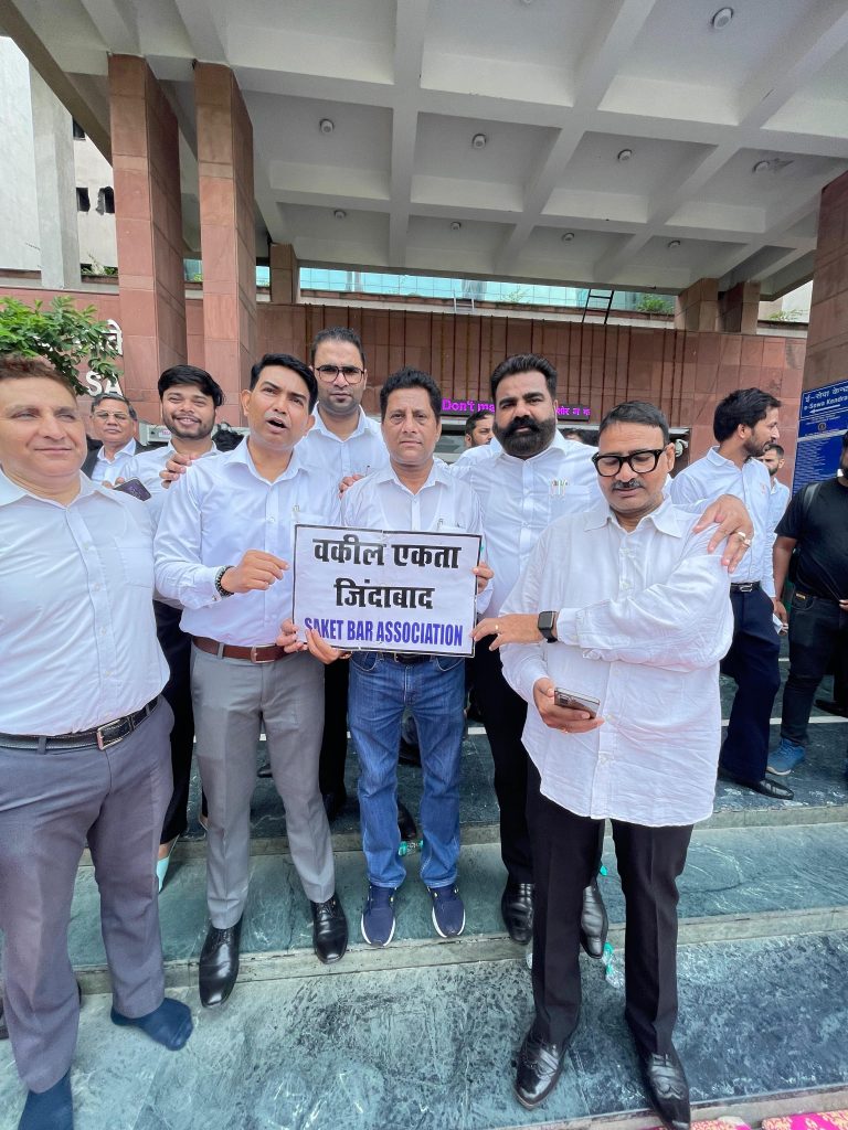साकेत कोर्ट की समस्त बार मेम्बर्स जिनके अथक प्रयासों और 22 अगस्त से निरंतर हड़ताल पर बैठने की कवायद से ही ये मुमकिन हो पाया है इसमें प्रमुख रूप से साकेत कोर्ट अध्य्क्ष श्री राजपाल कसाना जी, सेक्रेटरी अनिल बैसोया जी, उपाध्यक्ष नरेंद्र शर्मा जी, अडिशनल सेक्रेटरी हितेश बैसला जी, पूजा अरोड़ा जी,निर्देश बिधूड़ी जी, विक्रम बिधूड़ी जी, भरत आहूजा जी, अजय तंवर जी, यामिनी शर्मा जी,निखिल जी, गरिमा सिंह जी, पुनीत बशिष्ठ जी, सक्रिय रूप से भूमिका निभाने वाले एडवोकेट राजकुमार गोठवाल जी, धीर सिंह कसाना जी, विनोद शर्मा जी, मदनलाल जी,नीरज आनंद जी, राजेश परेवा जी, सुनीता भास्कर जी, रेखा पंवार जी, त्रिभुवन राठी जी, सुनील मोहन जी, मोहन श्याम आर्या जी, स्मिता जी, ऋचा प्रजपति जी, विभा जी, नरेंद्र मलावलिया जी, इरफान खान जी, आकाश गुप्ता जी, अरुण गुप्ता जी, सुरभि जी, सुभाष जी, ज्योति गुप्ता जी, योगेश सांखला जी, अनिल सांखला जी,कैलाश जी, जैसे संघर्ष शील वकील शामिल रहे।