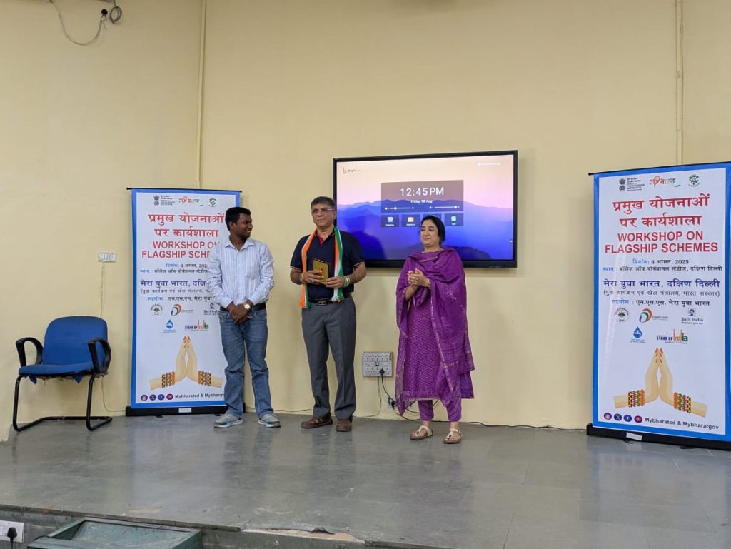 मेरा युवा भारत दक्षिण दिल्ली, युवा कार्यक्रम एवं खेल मंत्रालय भारत सरकार द्वारा दिनांक 8 अगस्त 2025 को कॉलेज आफ वोकेशनल स्टडीज के सेमिनार हॉल में भारत सरकार द्वारा प्रमुख योजनाओं के बारे में युवाओं का अवगत कराने हेतु कार्यशाला का आयोजन किया गया।