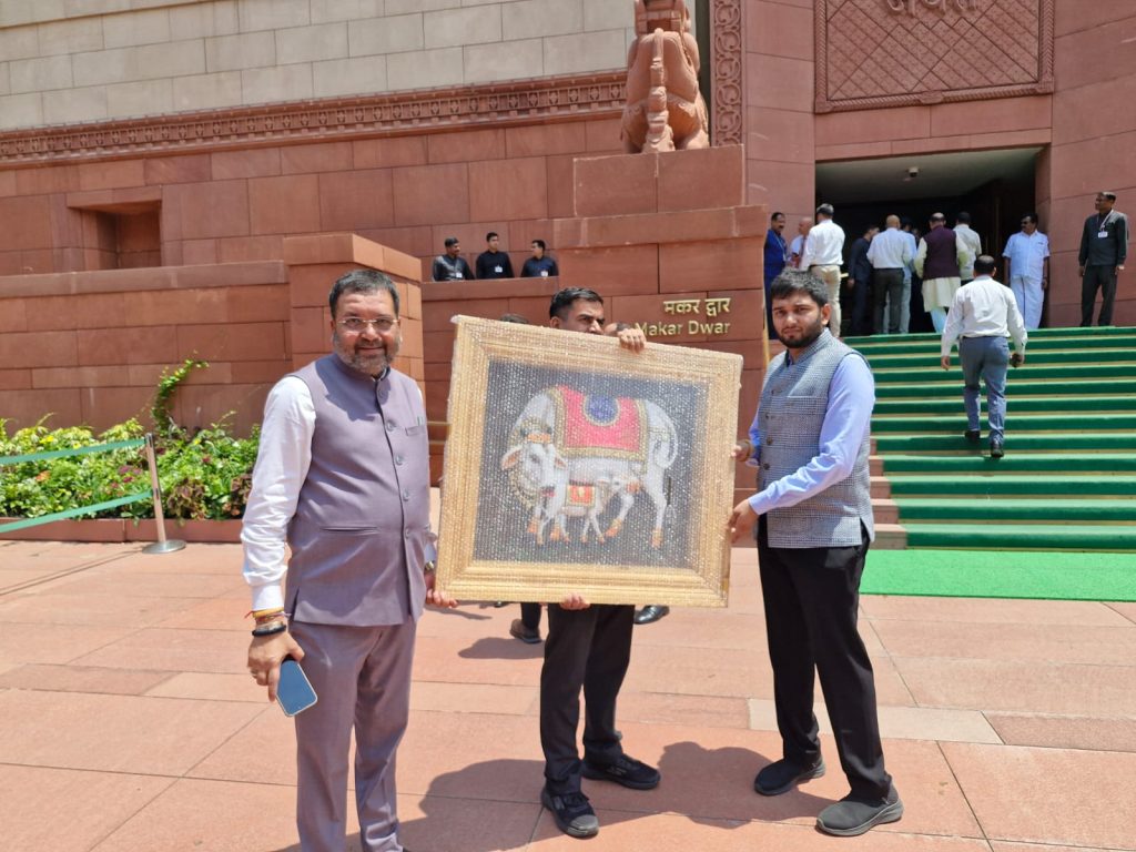 गोधन यानी गाय के गोबर से बनी पेंटिंग्स को नई ऊँचाइयों तक पहुँचाने वाले विश्व-ख्यात चित्रकार महेश वैष्णव की कृतियाँ अब देश के सर्वोच्च नेतृत्व तक पहुँच चुकी हैं। हाल ही में संसद भवन में गृहमंत्री अमित शाह जी को वैष्णव जी की गाय-बछड़े की गोधन पेंटिंग भेंट की गई।