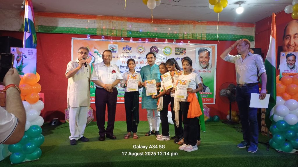 भीम ब्रिगेड ट्रस्ट के राष्ट्रीय अध्यक्ष राजीव जोली खोसला और राष्ट्र भक्तों ने मिलकर 79 व स्वतंत्रता दिवस और स्वर्गीय प्रोफेसर भीम सिंह जी का 84 व जन्मदिवस निर्माण विहार धूमधाम से बनाया खोसला ने कहा कि क्या हम आजाद हैं 15 अगस्त 1947 को भारत और पाकिस्तान का विभाजन हुआ था दो अलग-अलग मुल्क बने थे संताली से लेकर अब तक हिंदू मुस्लिम विवाद हिंदुस्तान में जरूर से ज्यादा चल रहा है जबकि पाकिस्तान में हिंदुओं पर हो रहे बेतहाशा जुल्म बरकरार हैं और हिंदू की पाकिस्तान में संख्या में जरूर से ज्यादा कमी आई जबकि हिंदुस्तान में भारतीय मुसलमान को हर प्रकार की सुविधा मिल रही है जनसंख्या में भी बढ़ोतरी है मगर पड़ोसी मुल्क पाकिस्तान के पेट में दर्द रहता है और वह आए दिन बाहर से मुसलमान को भेज कर किसी न किसी रूप में दंगे फसाद करवाता रहता है हम सब भारतीयों को एकजुट होकर इसका विरोध करना पड़ेगा अन्यथा स्थिति गंभीर है शेर जम्मू कश्मीर स्वर्गीय प्रोभीम सिंह जी के 84 में जन्म दिवस पर सोलो एक्टर हितेश कुमार ने उनके जीवन का 84 वर्ष का मंत्र 8 से 10 मिनट में परिचय पेश किया सुखमनी सेवा ट्रस्ट के बच्चों द्वारा राष्ट्रभक्ति का गुणगान किया अकादमी के कर्ताधर्ता सोनू चंदेल जी ने भी देशभक्ति पर समय बांध दिया प्रो भीम सिंह जी के पारिवारिक सदस्य सनी जी बी मौजूद रहे स्टिक ट्रैवल ग्रुप के अध्यक्ष आदरणीय सुभाष गोयल जी, ने भी राजीव खोसला द्वारा प्रो भीम सिंह जी को याद करने की सोच की प्रशंसा की सुप्रीम कोर्ट बार एसोसिएशन के पूर्व महासचिव अधिवक्ता रोहित पांडे जी ने भी बताया कि प्रो भीम सिंह द्वारा युवाओं को किस प्रकार संघर्ष करने का मौका दिया और आज हम सफल अधिवक्ता हैं सुखमणि सेवा ट्रस्ट की अध्यक्ष रोशनी जी ,उपाध्यक्ष मंजू जी, सदस्य लता जी और खजांची राजू रहेजा जी, रिटर्न टू नेचर के अध्यक्ष प्रसिद्ध ज्योतिष आचार्य महेश जैन जी, ने अपना स्वास्थ्य कैंप लगाया सभी प्रकार की दर्दों को चंद मिनट में बिना सुई बिना दबा के गायब कर दिया ,महेंद्र जैन जी, योगेश गॉड जी, विश्व के पहले सरदार जादूगर जितेंद्र सिंह बब्बर जी ने भी अपना जादू का कर्तव्य दिखाए !पत्रकार साथी भाई बृजेश जी, भाई अरुण जी ,भाई राजेश जी भाई, भीम ब्रिगेड ट्रस्ट दिल्ली के अध्यक्ष भाई इरशाद कुरैशी उर्फ बाबा आज डॉक्टर पूनम जी का भी जन्म दिवस था और सभी ने मिलकर केक काटा आदरणीय बड़े भाई भारत रत्न जितेंद्र सिंह शांटि जी ने भी कार्यक्रम में आकर गरम दल क्रांतिकारी वीरों को नमन करने को कहा और अन्य के खिलाफ लड़ने के लिए मौजूद सभी राष्ट्र भक्तों को शपथ दिलाई जिस प्रकार प्रो भीम सिंह जी न्याय अधिकार की बात करते थे सड़क से सुप्रीम कोर्ट तक !राजीव खोसला ने आज प्रधानमंत्री नरेंद्र मोदी जी की बात को 