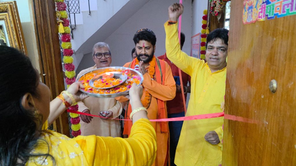 दक्षिणी दिल्ली :मालवीय नगर क्षेत्र विधानसभा में अखिल भारत हिंदू महासभा के कार्यालय का भव्य उद्घाटन माननीय दिल्ली प्रदेश अध्यक्ष विजय कृष्णा पांडे जी के कर कमलों द्वारा संपन्न हुआ। इस ऐतिहासिक अवसर पर पांडे जी ने मालवीय नगर क्षेत्र विधानसभा के अध्यक्ष के रूप में विश्व विख्यात चित्रकार, गौ-सेवा, और राष्ट्रसेवा के प्रति समर्पित महेश वैष्णव को नियुक्त किया। इस अवसर पर प्रमुख रूप से महामंडलेश्वर स्वामी डा. बैष्णवी जगदम्बा नंदगिरी जी उपस्थित रहें वहीं हिंदू महासभा के कई गणमान्य पदाधिकारियों में