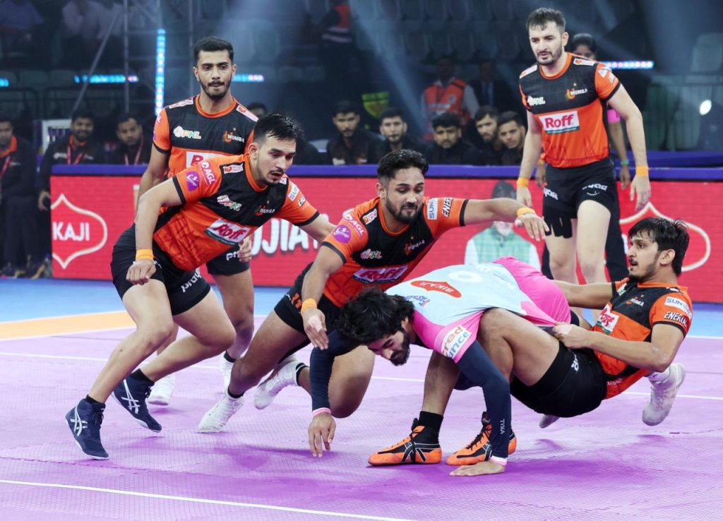 U Mumba continued to build momentum, displaying an all-round performance with both raiders and defenders contributing effectively. Their strong defence and sharp raiding helped them widen the gap further, putting pressure on the Jaipur Pink Panthers.